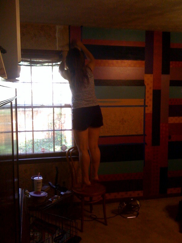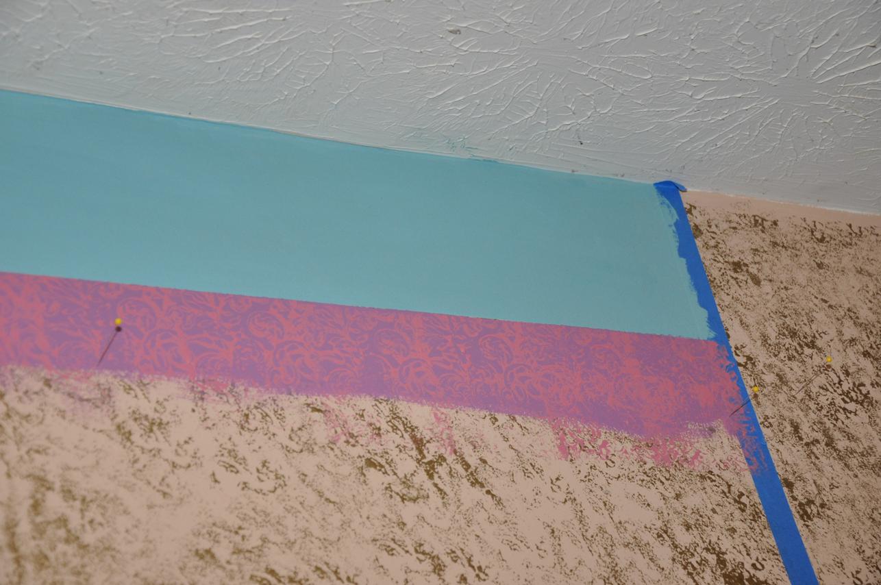 The first two blocks are finished. I normally cut a perfectly straight line but when I sneeze, this happens to the ceiling. Dust was just FLYING! I had to touch up my ceiling after this. LOL. Then I got the telescoping duster out to take care of the dust.