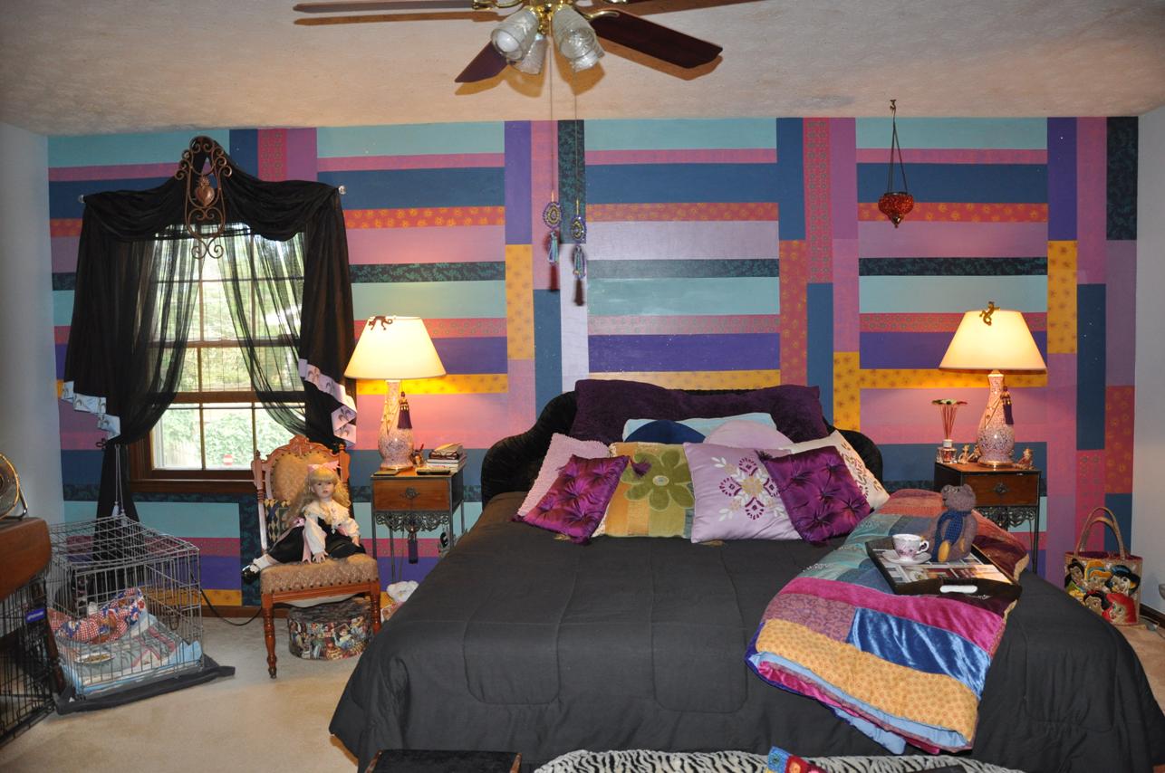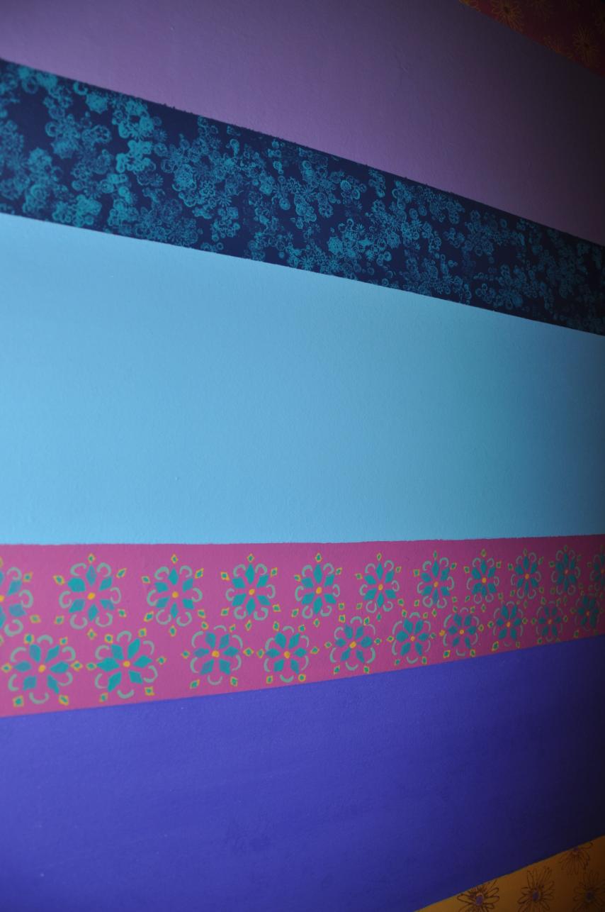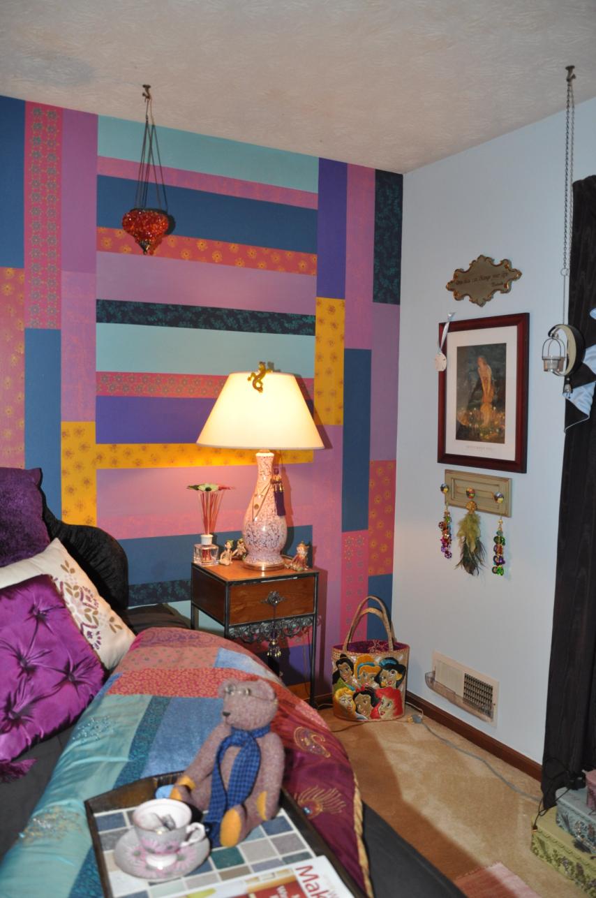 Perhaps you've noticed, the comforter on the bed. It is where I got the pattern for this wall.