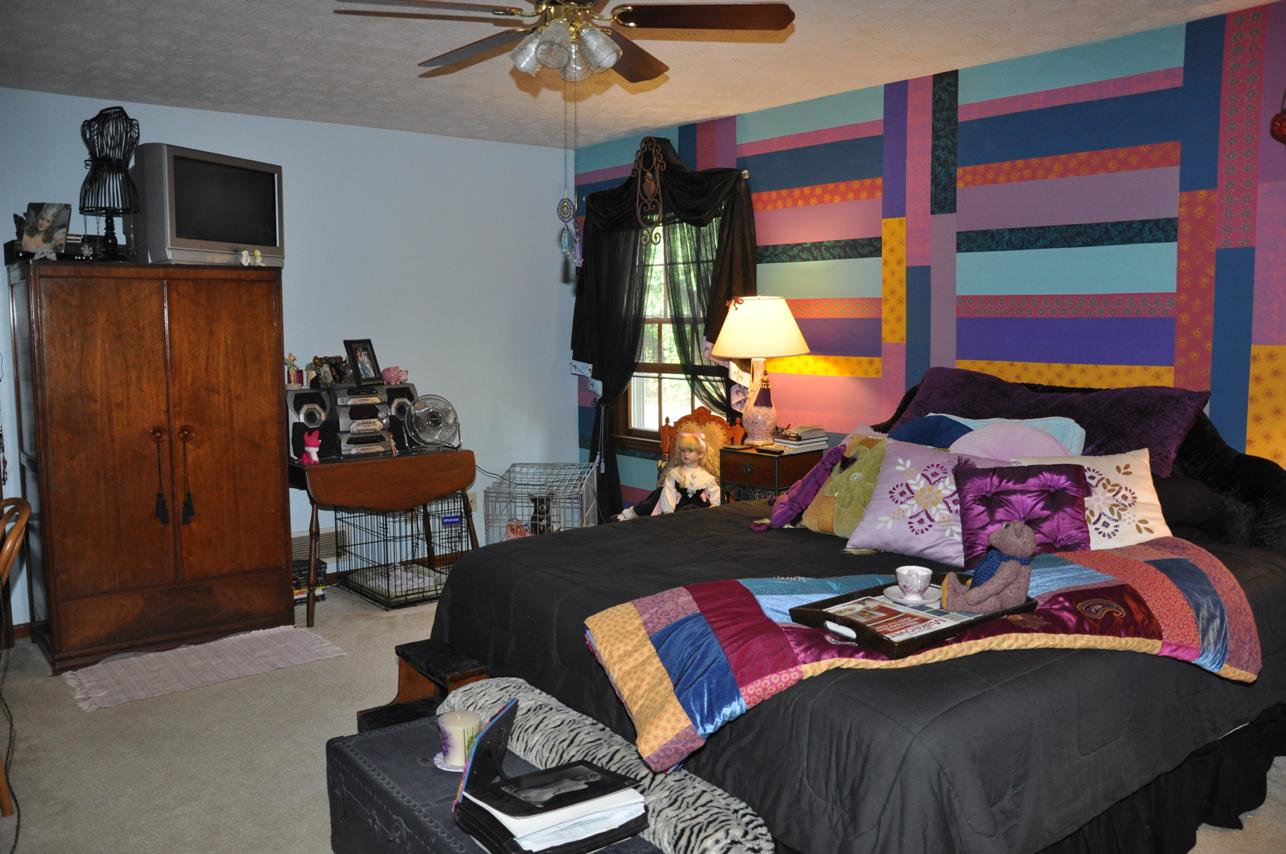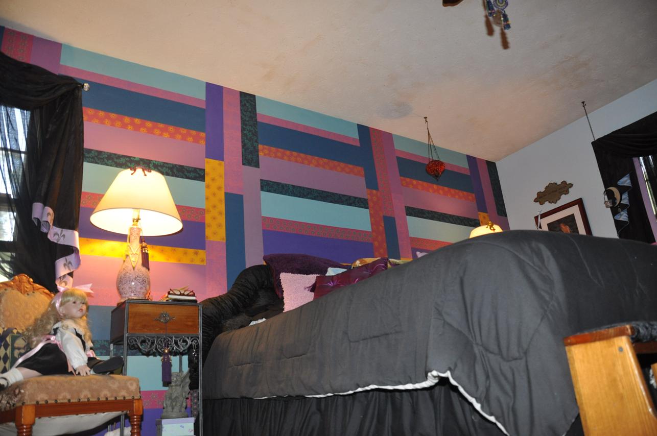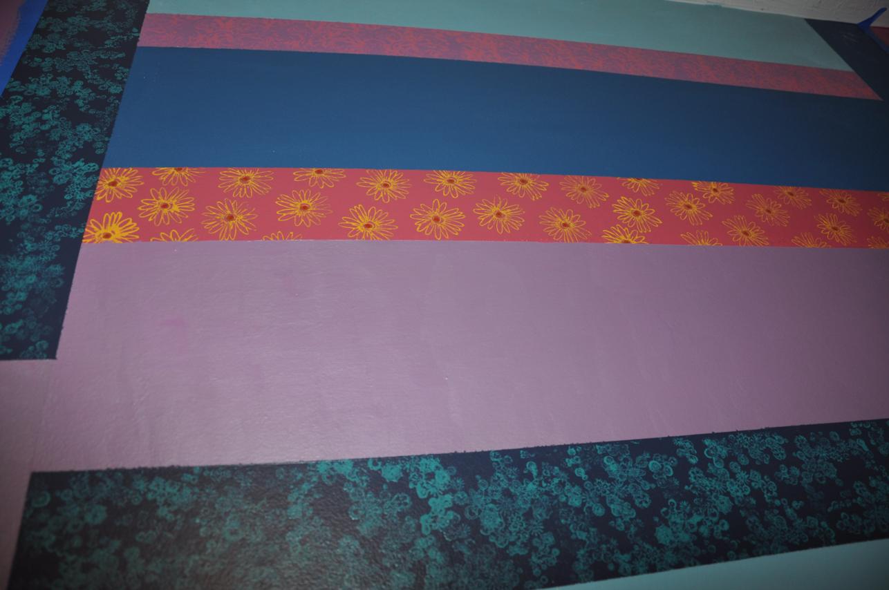 Perhaps you've noticed, the comforter on the bed. It is where I got the pattern for this wall.