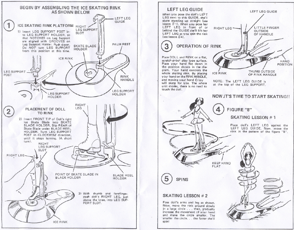 The rink/stand is really quite fascinating. As the doll on her stand is moved about a smooth surface, she appears to skate and twirl.