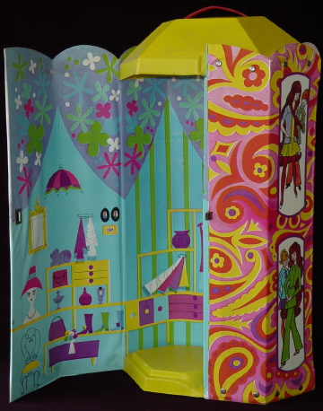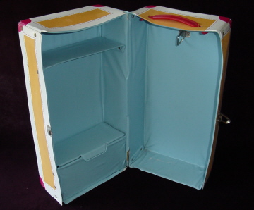 This deluxe case is also marked 1970 but was sold in 1971. A bit larger, it could hold Crissy and a friend. One side has a hanger holder. The handle can be either red or black.