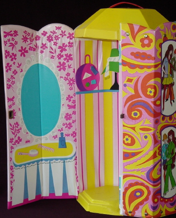 This 1971 steamer trunk was sold in the 1971 and 1972 Sears Wish Book. It came with stickers to place on the outside of the trunk to indicate all of the places that Tressy and Cricket traveled.