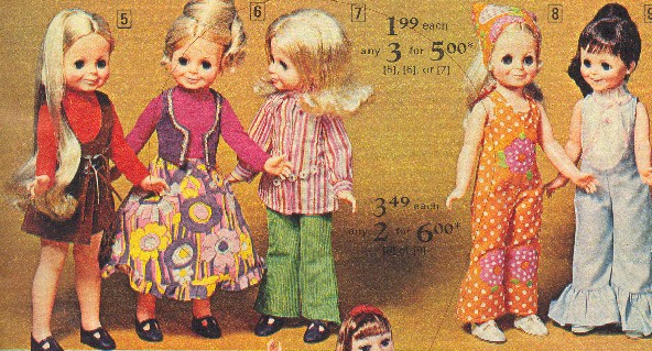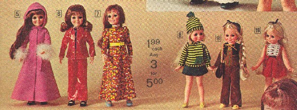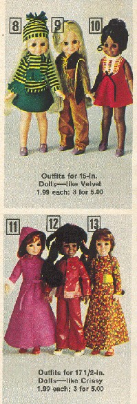 | Here are the 1972 JCPenney catalog outfits for Crissy & Velvet sized dolls. |