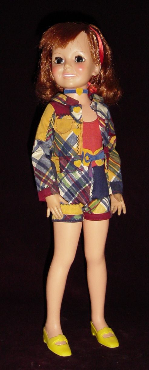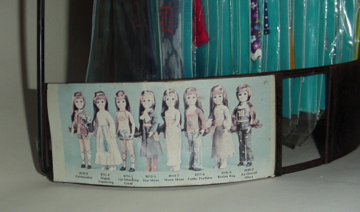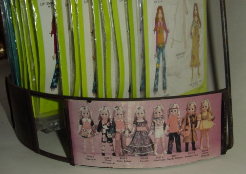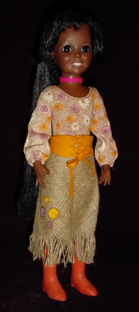 The Dress Down set for Crissy included: Patchworker, Hippie Happening, Lip Smackin' Good, Starshine, Moonshine, Funky Feathers, Burlap Bag, and An Overall Effect. They were sold on green cards. Most of the green-carded outfits are tagged, though not all of them are. Ideal wasn't very consistent in tagging their garments.