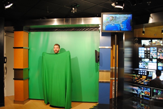 (Below) Demonstrating how the green screen works.