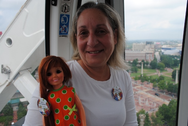 July 25, 2013: Here is Vacation Crissy! She is wearing her dress that Linda B made for her in 2008 for the Cruisin’ With Crissy Disney Cruise. Those Mouseketeer ears are simply adorable. We are getting ready to go pick up arriving friends from the subway station.