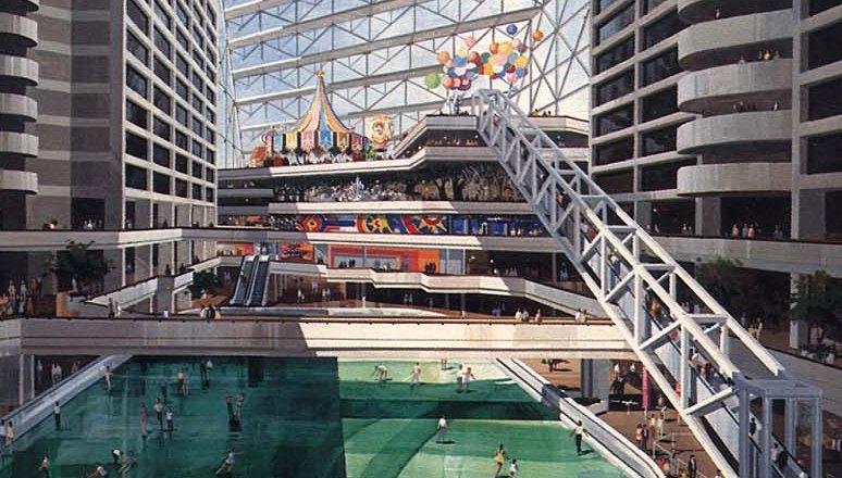 There was an ice skating rink on the ground floor. Notice that LONNNNG escalator. It’s still there at CNN.