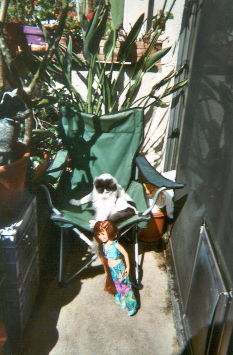 …but Fiona’s cat Banjo smacks me away from his chair! Fiona caught me just in time! Remember, I am proud to have a flawless complexion!