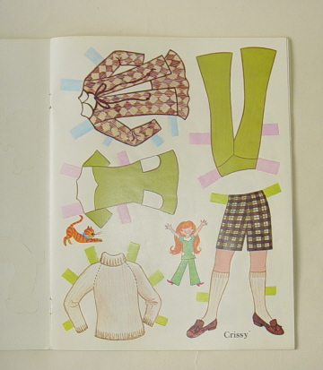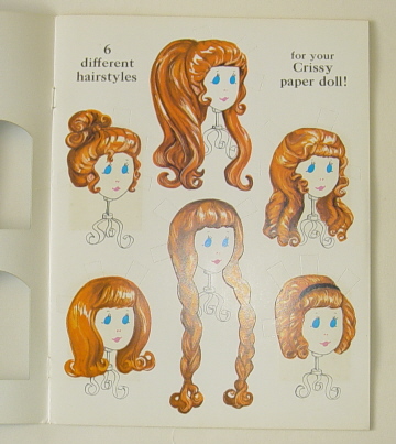 The above is the 1970 "Crissy paperdoll, fashion and hairstyle boutique." The paperdoll is inside the back cover and features a rather young looking Crissy.