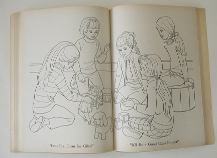 In the story, Crissy is watching from her window when the new family moves into the neighborhood. After Crissy introduces herself to Velvet and her family, she and all the neighborhood girls form a club. For charity, they refurbish toys and dolls and then hold a party for orphans. It is a very sweet and charming story.