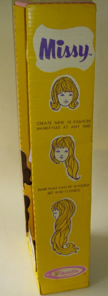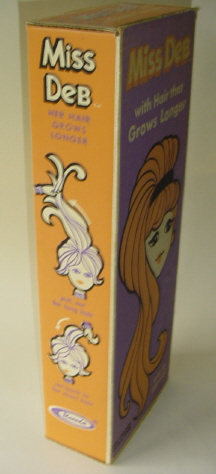 Another company that made more than their share of growing hair dolls was Uneeda. Here is Miss Deb (who came in many types of boxes). |