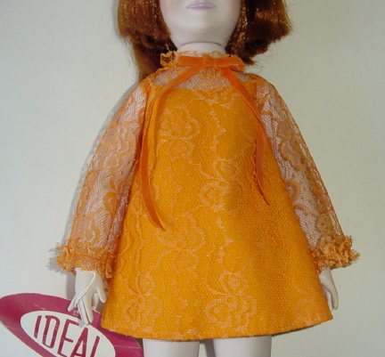 The orange lace is dress in 90% identical. The only thing different is the bow. It is a softer velvet type ribbon as opposed to the stiff, flocked orange ribbon found on the 1969 vinyl version.