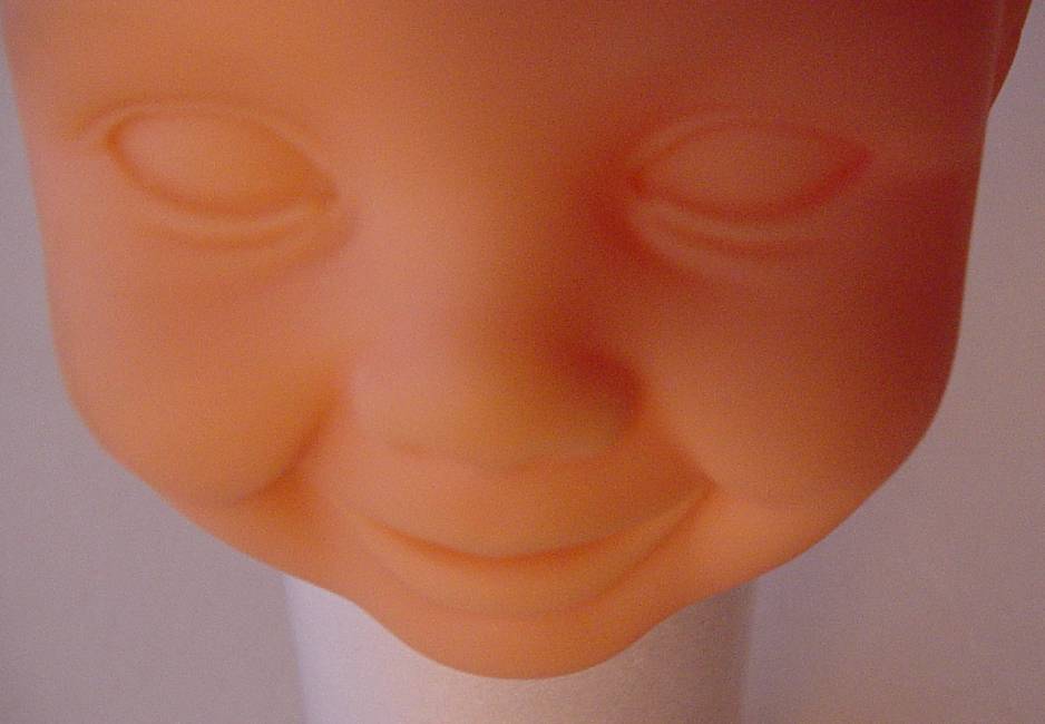 The fact that Rusty is not marked Hong Kong like Cinnamon is a big indicator. When the original sculpts were sent to the Orient to be “molded,” they were not marked Hong Kong. This was added to the final mold before it was used to create the vinyl heads. This is due to United States laws that require a product to be labeled with its country of origin. When the original sculpt was created and then cast, mold markings were added here in the States for planning while in the prototype stage. However, there was no reason yet for Ideal to mark the piece with its country of origin.