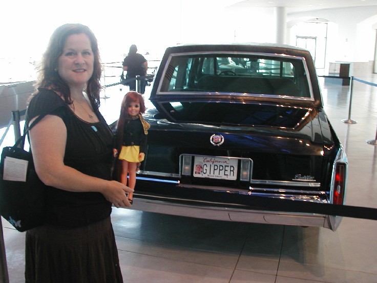 And here is a picture of Jody and I in back of a car that was in the Presidential Motorcade. I like the plate. Groovy ol' Caddie.