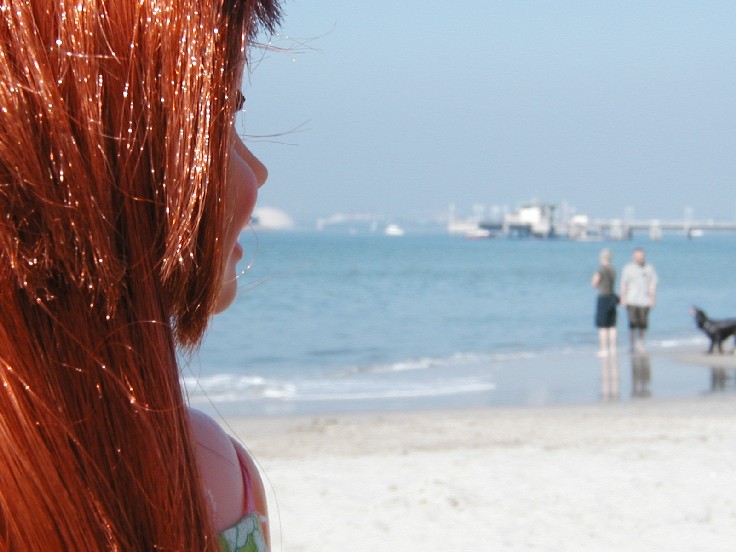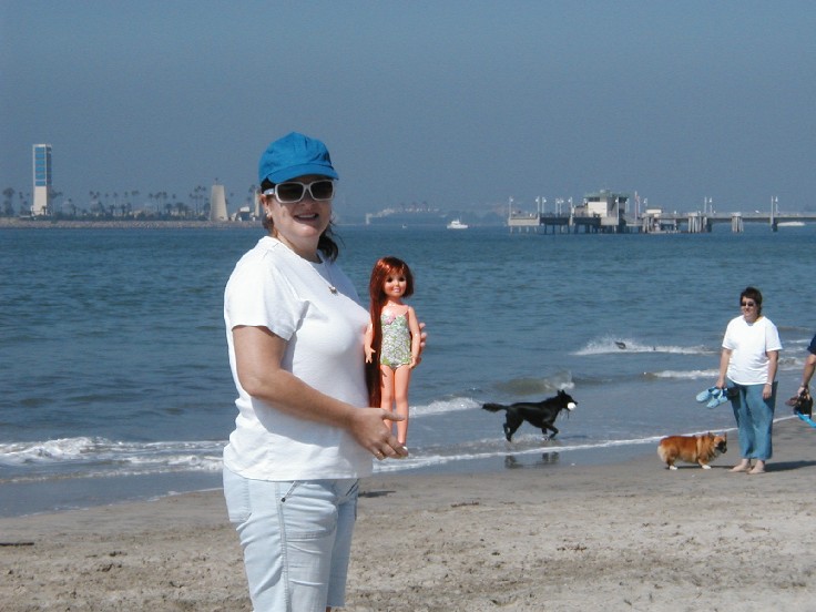 Early Saturday 26th we went to Long Beach. Can you see the Queen Mary above my head? At this beach dogs can play.