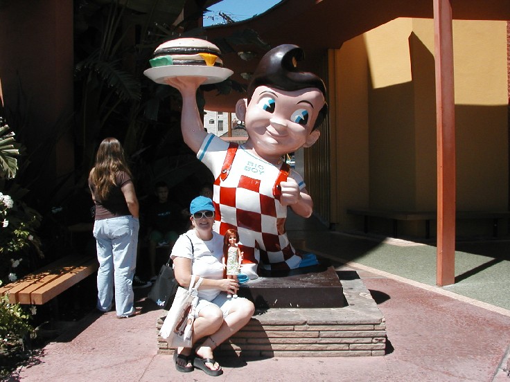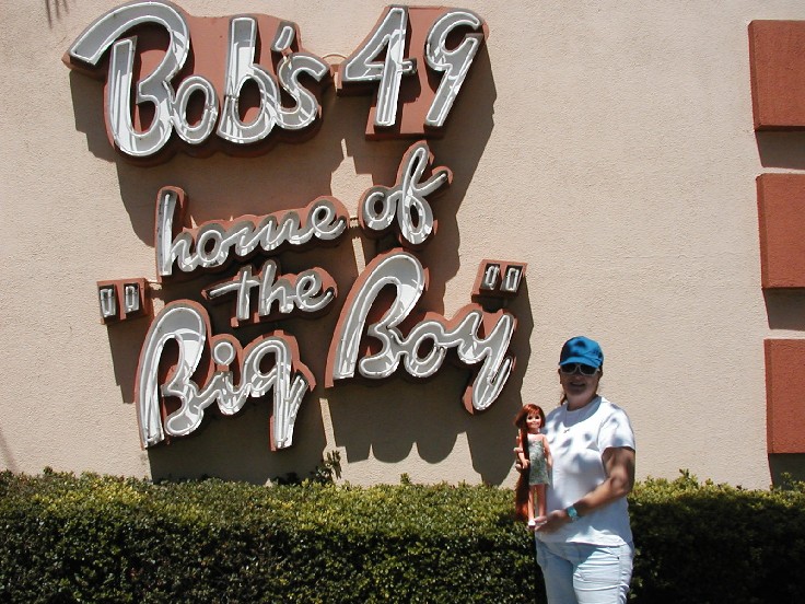 After a day at the beach we thought it would be fun to go to "Bobs Big Boy." It is a landmark and is in the city of Burbank. It is a place Jody goes to every year for her birthday. I'm glad she took me.